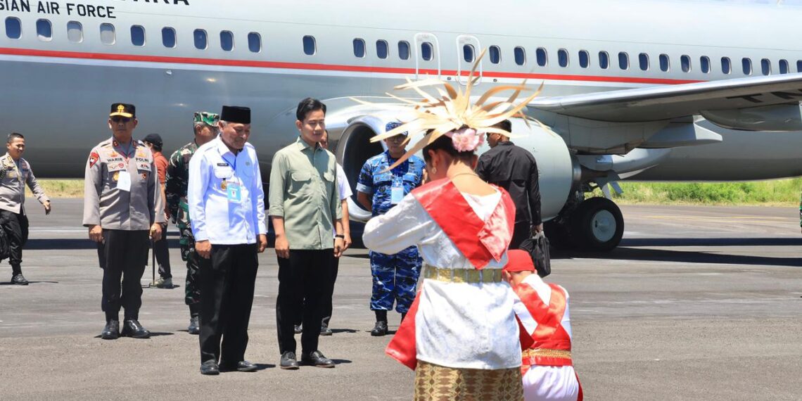 MALUKU UTARA– Wakil Presiden (Wapres) Republik Indonesia, Gibran Rakabuming Raka beserta rombongan tiba di Bandara Pitu, Desa Wawama, Kecamatan Morotai Selatan, Kabupaten Pulau Morotai, Rabu 15/10/25, untuk melakukan kunjunga kerja di kabupaten itu.