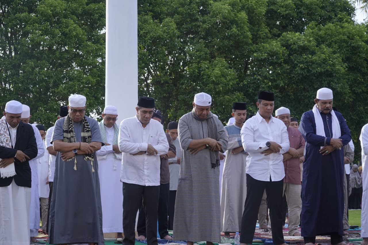 TIDORE – Pelaksanaan Salat Idulfitri 1447 Hijriah/2026 Masehi yang dipusatkan Pemerintah Kota Tidore Kepulauan di Halaman Kantor Wali Kota berlangsung khidmat dan tertib pada Sabtu (21/3/2026) pagi.