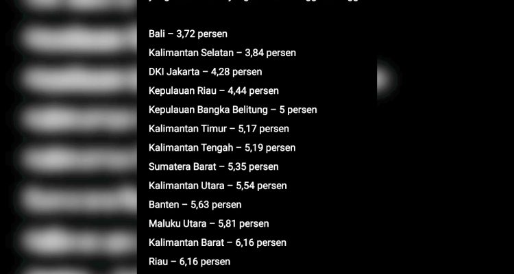 Provinsi Maluku Utara Tercatat Provinsi Dengan Tingkat Kemiskinan Terendah 5,81 Persen Lebih Rendah dari Jawa Barat Berita, Malut, Nasional|Oktober 4, 2025Oktober 4, 2025oleh Redaksi Foto: Angka Survei Tingkat Kemiskinan Terendah hingga tertinggi di 38 Provinsi di