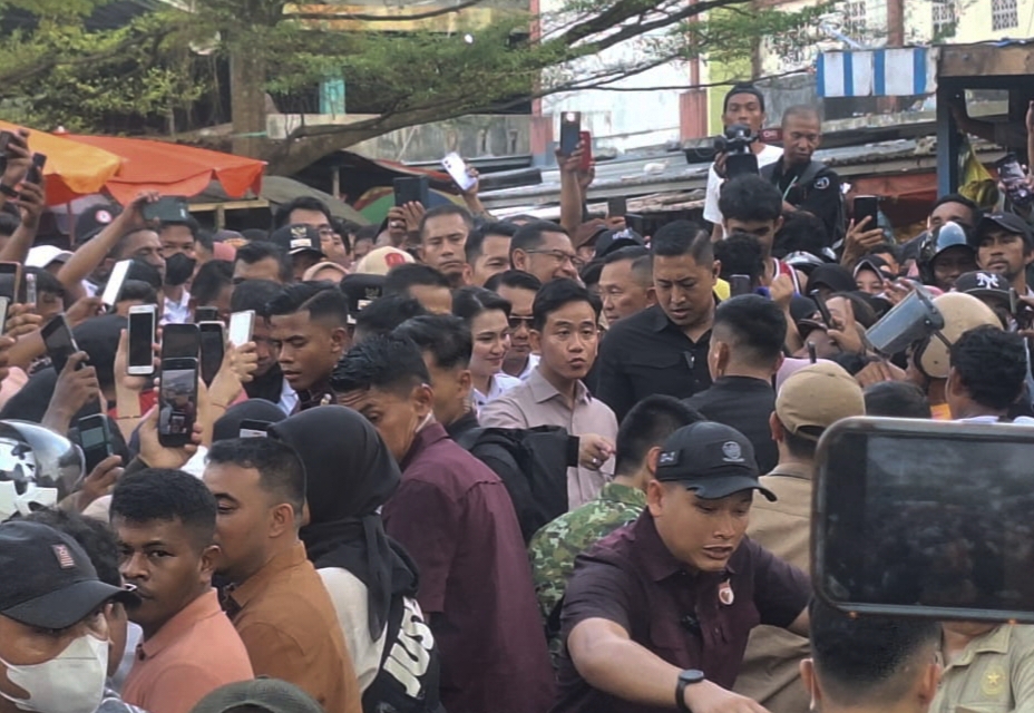 Warga yang menunggu sejak siang tampak berdesakan di sekitar area pasar, hanya untuk melihat langsung sosok putra sulung Presiden ke-7 RI, Joko Widodo, yang kini menjabat sebagai Wakil Presiden itu.